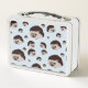 This is a standard metal lunchbox that appears to work just fine. We designed this box ourselves with an uploaded photo and custom text on the front and back. It looks absolutely beautiful except the front of the lunchbox is not centered like it shows in the photo. The print borders don't align with the inset flat part of the box where the preview photo online showed it perfectly centered in there. The back looks nice and centered though.