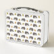 This is a standard metal lunchbox that appears to work just fine. We designed this box ourselves with an uploaded photo and custom text on the front and back. It looks absolutely beautiful except the front of the lunchbox is not centered like it shows in the photo. The print borders don't align with the inset flat part of the box where the preview photo online showed it perfectly centered in there. The back looks nice and centered though.