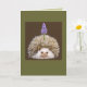 hedgehog with grape hyacinth hat on card for you to customise at no extra cost