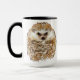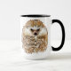 Digital painting of a hedgehog is depicted on both the front and the back of the mug.