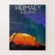 Heimaey, iceland, camping travel poster, northern lights at night camp travel poster.