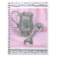 An heriloom cup sits next to a baby rattle in this work by Tara Friel. A figure of a teddy bear is carved into the end of the rattle, and intricate floral patterns are adorn the sides of the cup. A great piece, put this on your wall today!