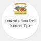 Heirloom Gardens Seed of Yesterday, Feeding the Future gardener saying for vintage fruit and vegetable seed savers and growers. In retro and futuristic letters with grapes, pear,tomato, carrots and corn. These stickers are great for seed packet labels when saving or trading seedsj.