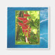 The fabulous heliconia plant looks almost unreal, even in its natural surroundings in balmy tropical forests. This one happens to live outside of Nassau, in the Bahamas. We've placed it on a background of turquoise Caribbean waters, making it the perfect greeting card, postcard, fridge magnet or gift item.