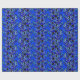 Wrapping paper featuring bold floral pattern in blue shades, exotic tropical flowers (heliconia rostrata / lobster claw) with white outlines, hand drawn texture.