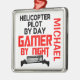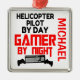 This custom ornament featuring the quote "Helicopter Pilot by Day Gamer by Night" is perfect for any helicopter pilot that loves playing video games.