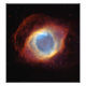 This eye-like composite photograph of the Helix Nebula is created from images taken by the Hubble Space Telescope and Chile's Cerro Tololo Inter-American Observatory. It shows orange-coloured gaseous clouds around a blue central area.