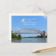 The towering Amtrak Rail Bridge known as Hell Gate Bridge over the East River in New York City on an Adventures for Anyone designed postcard.