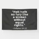 Banner design with sarcastic protest quote to the overturning of Roe v. Wade. ""Hell hath no fury like a woman without equal rights." - Fallopians 20:22 White text on black background