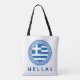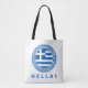 Hellas tote bag featuring the national flag of Greece inside a Greek blue Aztec circle.