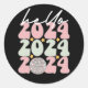 Hello 2024 Groovy Happy New Year Christmas Classic Round Sticker