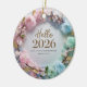 Hello 2026 Pastel Floral Wreath Ceramic Ornament