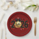 Hello 2026 Red Glitter Sparkle Design Paper Plate