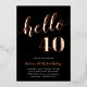 Celebrate her milestone birthday with these festive party invitations featuring "hello [age]" in rose gold foil lettering on a rich black background. Personalise with your party details beneath. Example shown for a 40th birthday.