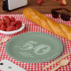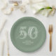 Hello 50 | Modern Simple Sage Green 50th Birthday Paper Plate
