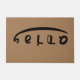 a ambigram of the English word hello and the Spanish word adios for a doormat that reads both sides, in and out. a two way doormat.