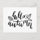 Hello Autumn Leaves Black and White Calligraphy Holiday Postcard