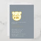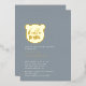 This charming gold foil baby shower invitation features an adorable bear motif, perfect for celebrating the arrival of a new little one. The design is sweet and whimsical, with the words "hello baby" bear baby shower invitation adding a playful touch to the overall look. Ideal for a gender-neutral shower, this invitation is sure to delight guests and set the tone for a joyous celebration of the new arrival.