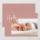 Birth announcement. Baby announcement. Baby boy. Baby girl, Gender neutral. Photo. Hello. Hello Baby. Patterned backer. Windowpane plaid. Bold. Modern. Contemporary. Pink.