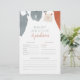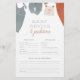 A cute baby advice & predictions card featuring boho baby clothes in a blue and rust-orange colour scheme. Below, there is space for the guests to write their birth predictions, resemblance predictions, and advice for the new parents. This activity card was made to match our "Hello Baby | Blue Boho Clothes Boy Baby Shower" invitations. View the collection linked on this page for coordinating products.