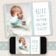 Hello Baby Boy Photo Blue and White Birth Announcement