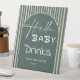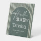 Hello Baby Dark Green Stripes Baby Shower Drinks Pedestal Sign
