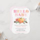 HELLO BABY invitations for a Baby Shower or Sip and See celebrating your little girl. Watercolor dog roses and pumpkin with boho feather detail.