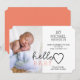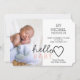 This simple text based design is perfect for spreading the happy news that your family and friends have been waiting for! Introduce your sweet new baby with this easy, customisable Hello Baby announcement card! Featuring a portrait photo of your little love and room to personalise with your baby's name and birth stats.