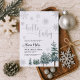 Hello baby invitation. Winter baby shower invitation with silver glitter effect, and watercolor pine trees.