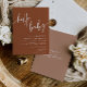 Minimalist baby shower invitation that has a stylish design, an earthy terracotta colour palette and a modern font. This contemporary invitation is easy to edit and is perfect for a gender neutral modern or boho baby shower. Pair with anything in the DYLAN collection for a cohesive look.