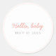 Welcome your little one with this adorable “Hello Baby” sticker in a soft pink peach design! Perfect for sealing envelopes, treat bags, or party favours at a baby shower for a sweet baby girl.