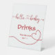 Hello Baby Red Heart Minimal Baby Shower Drinks Pedestal Sign