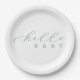 Hello Baby Sage Script Minimalist Baby Shower Paper Plate