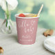 A modern minimalist baby shower paper cup featuring a cute hand-drawn heart and stylish typography on a dusty rose pink background. Designed by Thisisnotme©