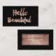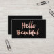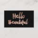 An elegant,modern, stylish hello beautiful business card with stylish script hand lettering style typography in faux rose gold foil on a simple customisable black background. If you need any customisation, don't hesitate in contacting me