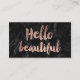 A modern, stylish custom name beauty business card with modern hand lettering style brush typography saying Hello beautiful in faux rose gold foil on a trendy and elegant black marble background. If you need any customisation, don't hesitate in contacting me