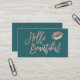 Hello beautiful lips rose gold chic script teal business card