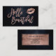 A modern, stylish custom name beauty business card with modern hand lettering style elegant brush typography saying Hello beautiful in faux rose gold foil on a trendy and elegant black watercolor cement background with a rose gold lips . If you need any customization, don't hesitate in contacting me