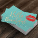Hello Beautiful Makeup Artist Gold Typography Red Lips Print Teal Business Cards.
