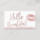 Hello Beautiful Makeup Artist Rose Gold Typography Business Cards.