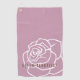 The product design features a simple large rose illustration in retro pink and white. This elegant botanic design makes a modern chic and unique golf towel with personalised text.