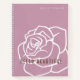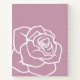 The product design features a simple large rose illustration in retro pink and white. This elegant botanic design makes a modern chic and unique notebook with personalised text.