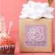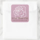 The product design features a simple large rose illustration in retro pink and white. This elegant botanic design makes a modern and unique square stickers with personalised text for salon, spa, makeup artist, hair stylist, her birthday, wedding, Mother's Day, and more - HELLO BEAUTIFUL