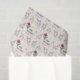 Tissue paper with a pattern composed of a square frame and a pink border, inside it says "Hello Beautiful" written in a trendy font with a doodled yellow sun above the text. Also a pretty pink, long stem flower with green leaves off to the side. The backdrop is a seamless pattern with hand drawn pink wildflowers with long green stems and leaves on a eggshell white coloured background. Pink circles and sprigs also decorate the design. Cute and pretty floral design.