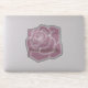 The product design features a simple large rose illustration in retro pink and white. This elegant botanic design makes a modern chic and unique vinyl sticker with personalised text.
