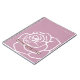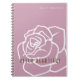 The product design features a simple large rose illustration in retro pink and white. This elegant botanic design makes a modern and unique notebook with personalised text.