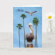 Beautiful Pelican with palm tall trees and a seagull flying above. Greeting card for any occasion you can customise it .with your own sayings by Elenne Boothe