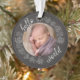 Introduce a special child to the world with this personalised acrylic ornament! A chalkboard style frame featuring script text and decorative scrolls surrounds your infant's photo. The back side repeats the Hello text along with baby's name and birth date. It's an artistic, modern gift to congratulate a birth!