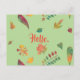 You can send hello greetings with these colourful autumn leaves postcards. The leaves are different shapes and are made of a variety of colours, including red, yellow, orange, and green. The text says, Hello, and is written in orange; it can be customised with your own greeting if you like. Happy fall. Thank you for shopping at CherylsArt on Zazzle.