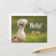 This funny chicken postcard features a customisable Hello message with a funny photo of a young Polish chicken. Photography by award-winning photographer Maria Jeffs.